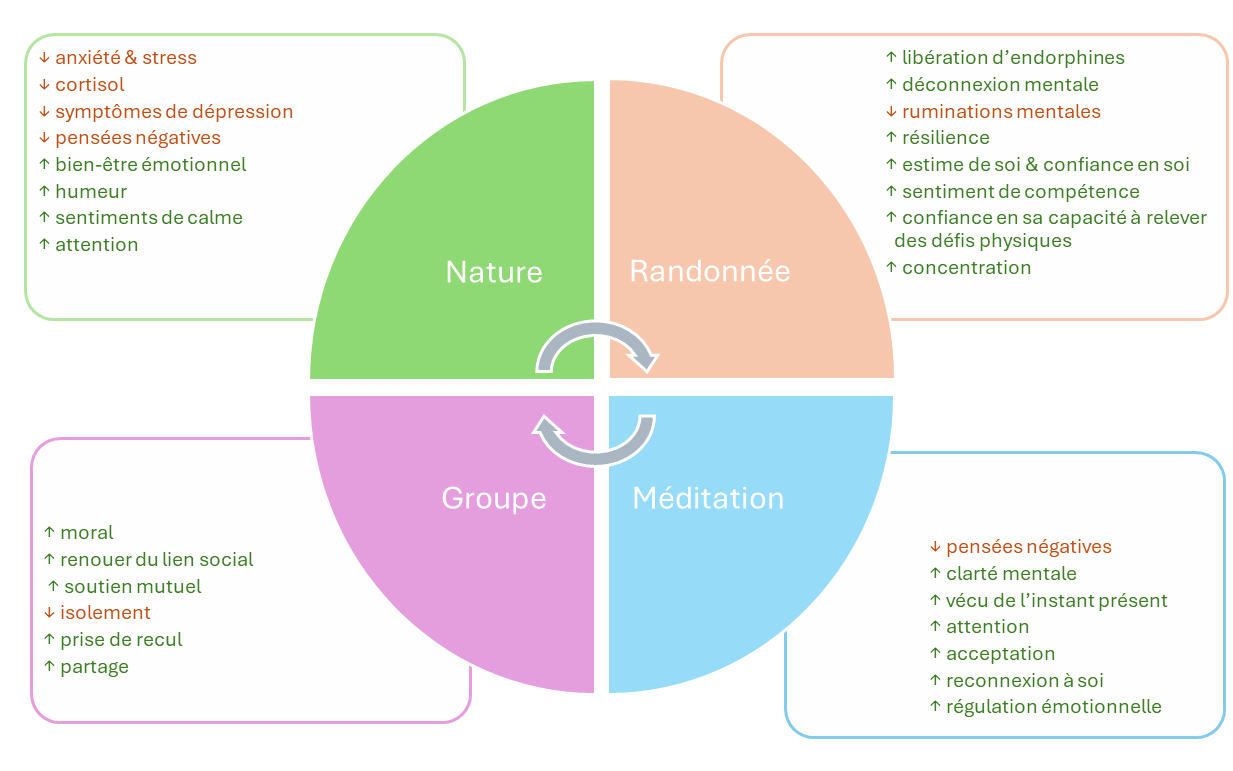 Un temps de méditation de 15 minutes vous sera proposé en plein air au cours de votre randonnée.